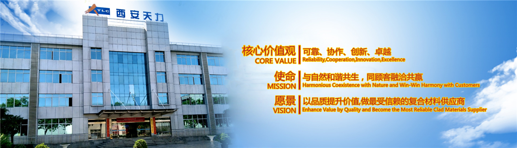 西安天力金屬?gòu)?fù)合材料股份有限公司是西北有色金屬研究院(集團(tuán))產(chǎn)業(yè)化上市公司“西部材料”控股的獨(dú)立法人公司,是專業(yè)從事層狀金屬?gòu)?fù)合材料研究及生產(chǎn)的高新技術(shù)企業(yè),成立于2003年12月25日,位于西安經(jīng)濟(jì)技術(shù)開(kāi)發(fā)區(qū)涇渭工業(yè)園,注冊(cè)資本10895萬(wàn)股,擁有生產(chǎn)廠房23000余平米,各類生產(chǎn)設(shè)備200余臺(tái)套及兩塊條件優(yōu)越的爆炸復(fù)合場(chǎng)地,形成年產(chǎn)25000噸層狀復(fù)合材料的生產(chǎn)加工能力……